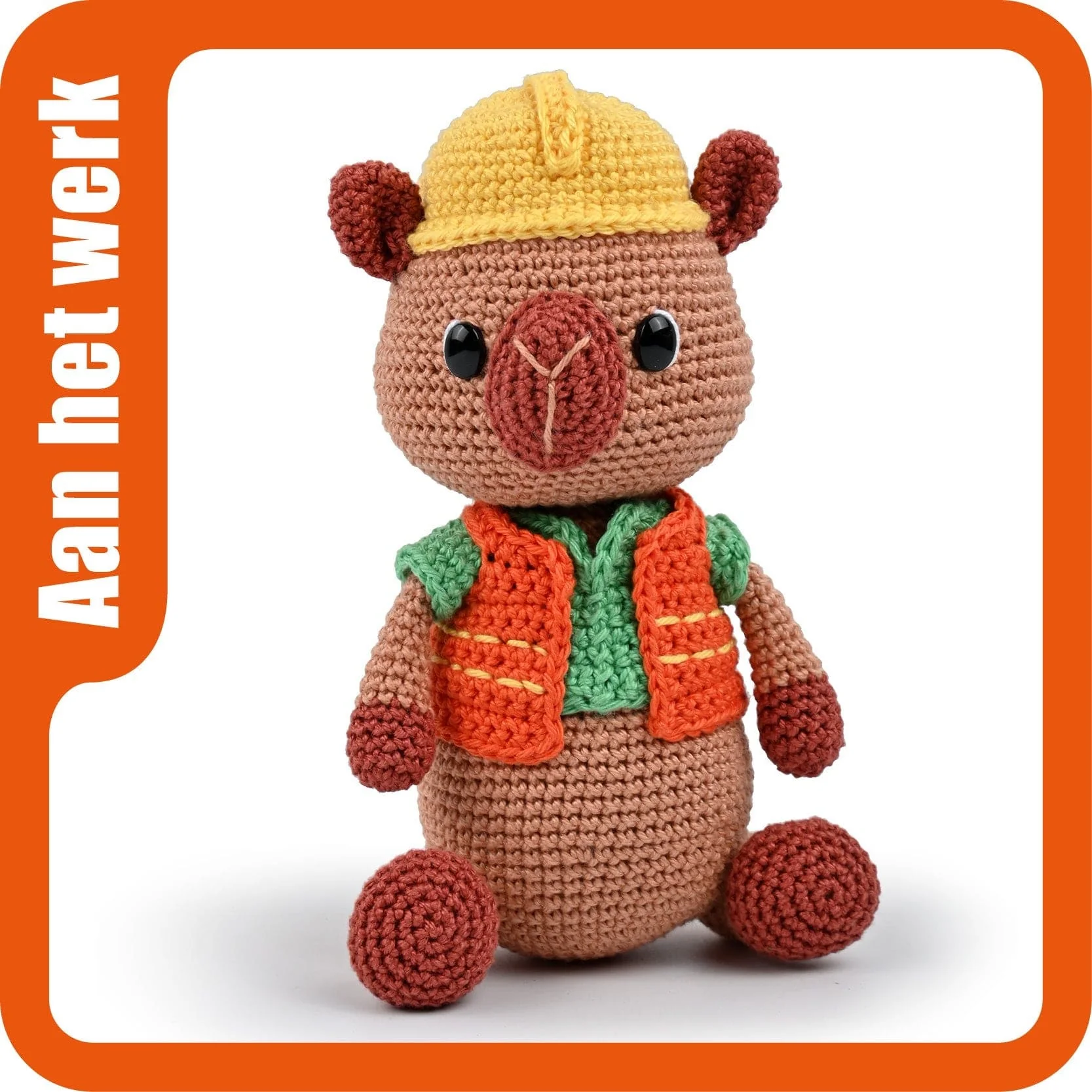 Garenpakket: Bouwvakker Cees Capibara – Dit beroepenbeestje is gehaakt met Coral van Durable en wordt ongeveer 15 cm groot.