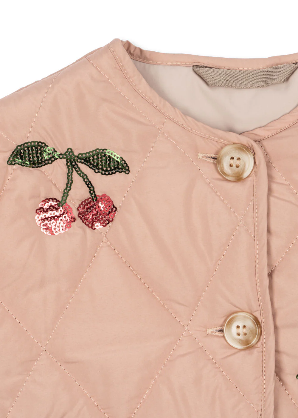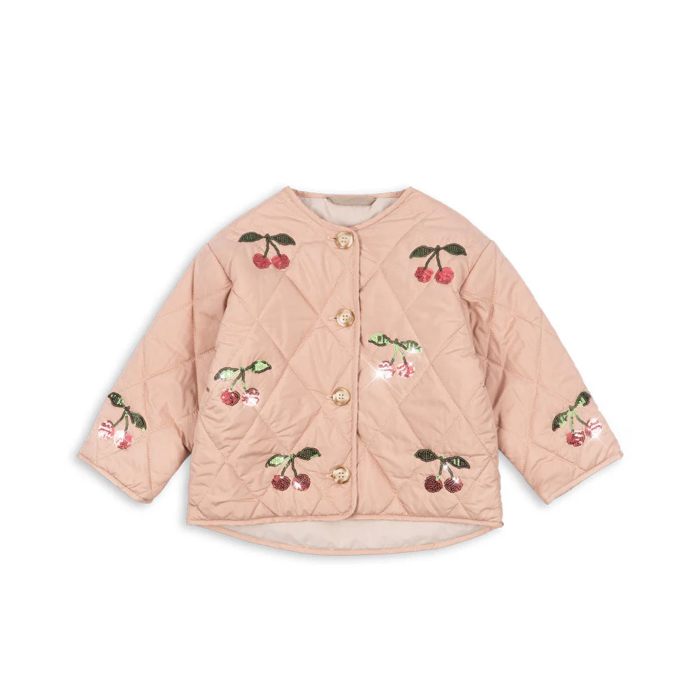 Dit licht gewatteerde quiltjasje is versierd met fonkelende pailletten die elke outfit meteen een feestelijk tintje geven. De losse, comfy pasvorm maakt het ideaal voor kleine avonturiers, terwijl de ronde hals en slanke manchetten zorgen voor die schattige touch.